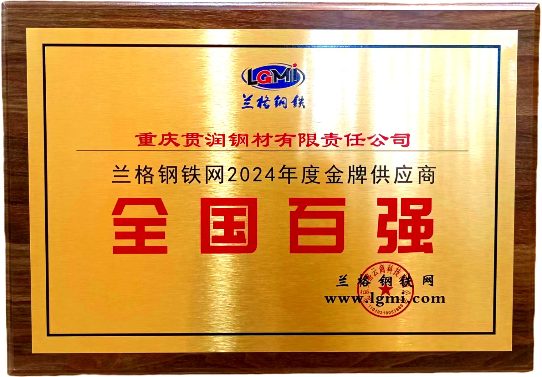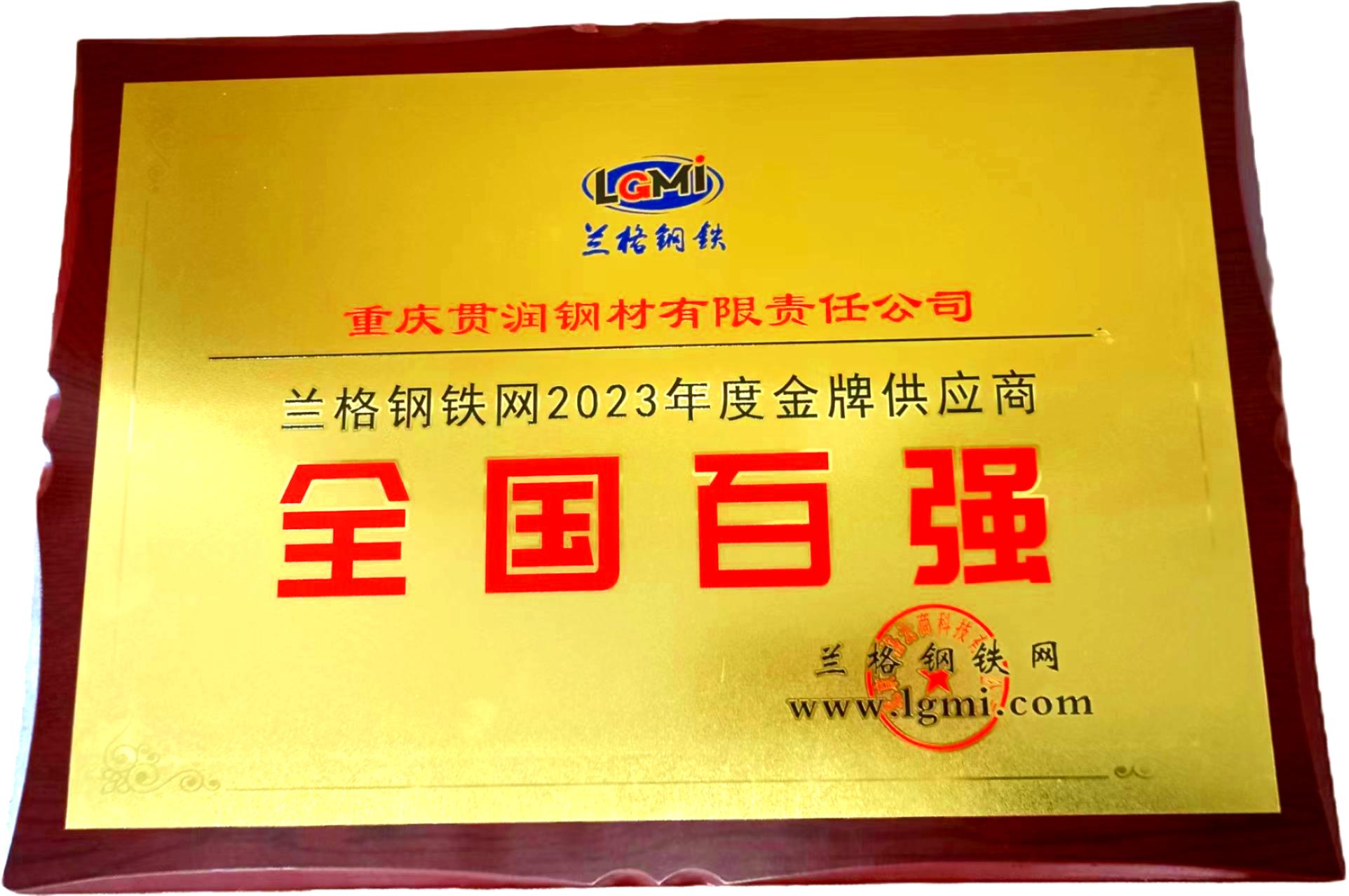 2024年度蘭格鋼鐵網(wǎng)全國(guó)百?gòu)?qiáng)(金牌供應(yīng)商)