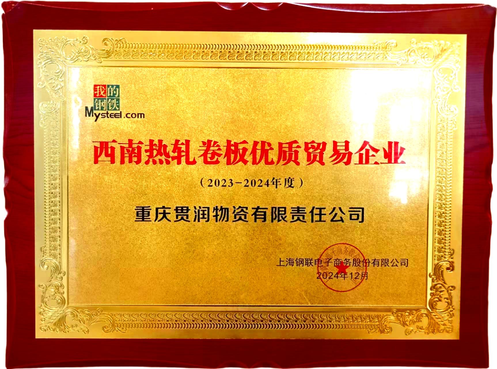 2023-2024年度我的鋼鐵網(wǎng)西南熱軋卷板優(yōu)質(zhì)貿(mào)易企業(yè)