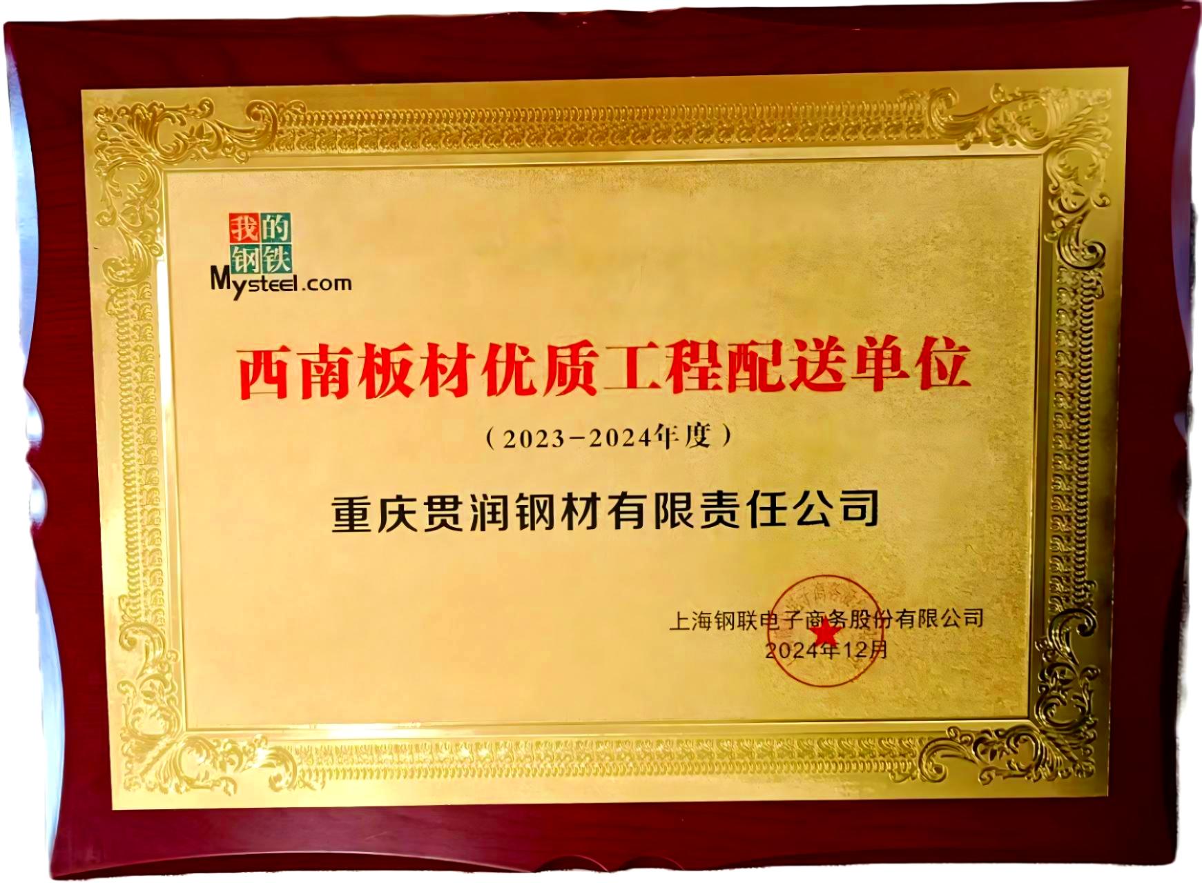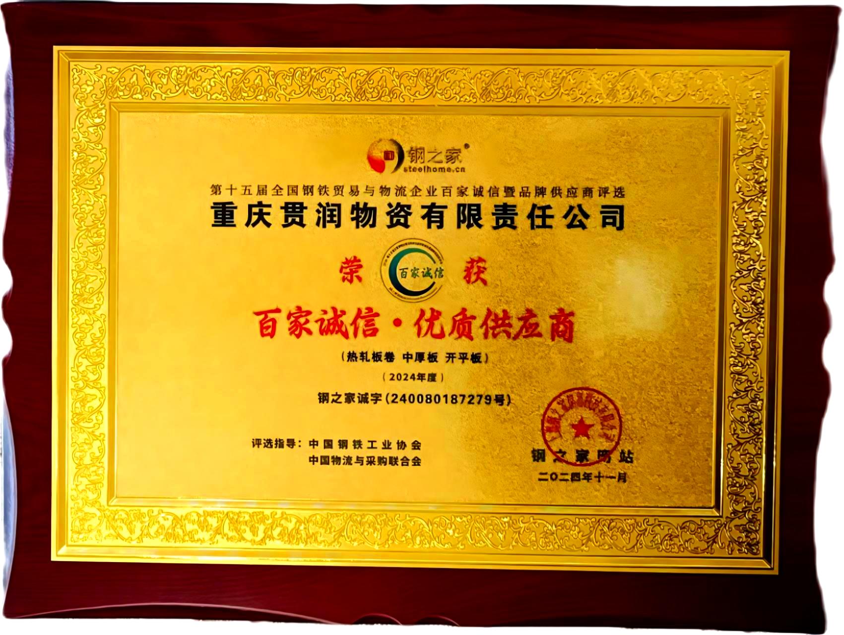 - 優(yōu)異的市場表現(xiàn)背后,是貫潤鋼材對產(chǎn)品品質(zhì)的嚴(yán)苛把控以及對客戶服務(wù)的極致追求。憑借優(yōu)質(zhì)的產(chǎn)品和無微不至的服務(wù),貫潤鋼材在行業(yè)內(nèi)收獲了極高的贊譽(yù)與認(rèn)可,各類榮譽(yù)紛至沓來。公司不僅是重慶市鋼材貿(mào)易商協(xié)會會員單位,更是連續(xù)多年榮膺“百家誠信、優(yōu)質(zhì)供應(yīng)商”“西南鋼材優(yōu)質(zhì)貿(mào)易企業(yè)”等一系列稱號。