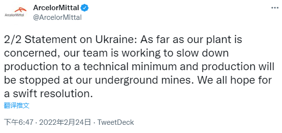 俄羅斯突襲烏克蘭!鋼廠紛紛停產(chǎn),運輸中斷!安塞樂米塔爾:將最大限度減產(chǎn)!日本制鐵:尋找鐵礦石替代來源 以防俄烏沖突導(dǎo)致供應(yīng)中斷!